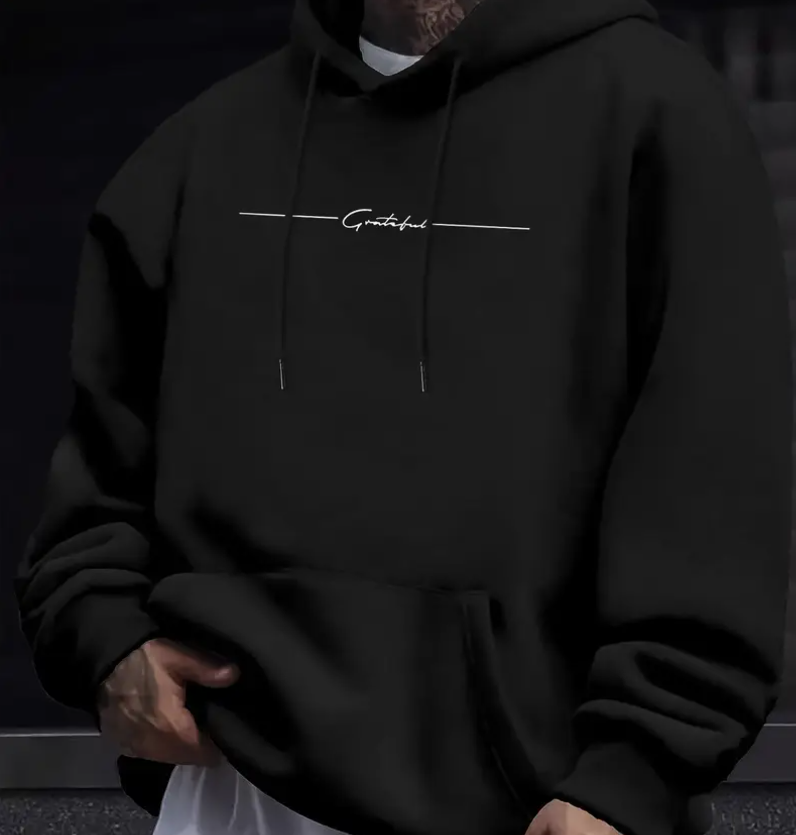 Cozy Grateful Letter Print Long Sleeve Hoodie